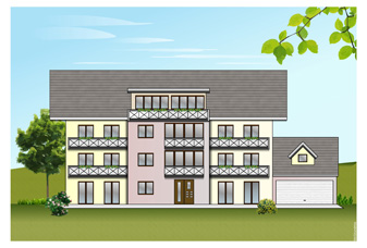 Hochwertig gerenderte Außenvisualisierungen. Sie erhalten zwei verschiedene Perspektivansichten pro Objekt.