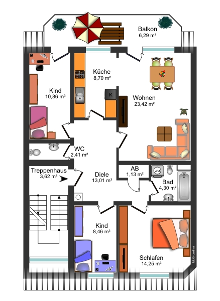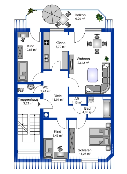 Vogelperspektive in 3D mit vielen Möglichkeiten der Individualisierung. Ideal für den emotionalen Entscheider.