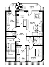 Komplexe Originalgrundrisse werden für ein besseres Verständnis vereinfacht und attraktiv nachgezeichnet.